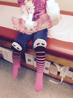 My biggest worry was finding socks. The insurance company graciously provided 3 pairs of socks. I really do not like doing laundry that often. I went to order more socks, but they are $19 a pair. Luckily my village responded: buy the cheap pair of knee socks they work just as well! So we got some rocking socks.