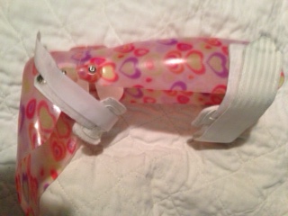 Love to hear that she can jump, that’s so cool! Here Smiley has been fitted for splints, but I don’t expect they will be as pretty as Bridget’s boots 🙂